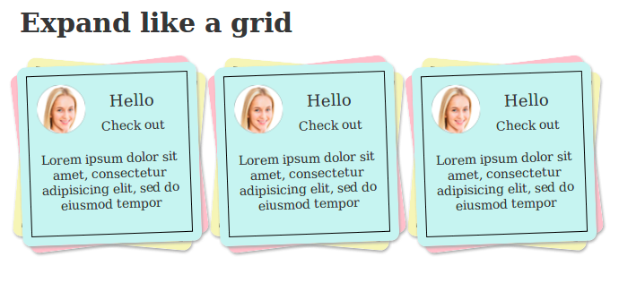 - Stack opening from left to right direction: This stack of cards opens in the right direction. We have simply set the position of the cards when clicked with CSS.