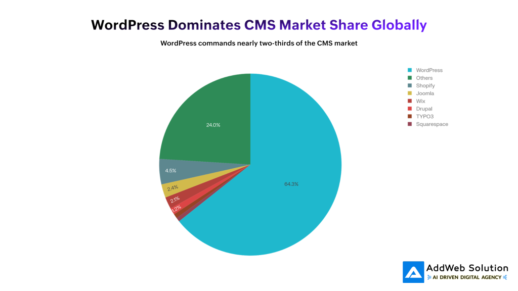Market share statistics are interesting but sometimes misleading. WordPress dominates at 64.3% global market share, which makes it the obvious choice—except when you’re running a site that must handle extreme traffic.​