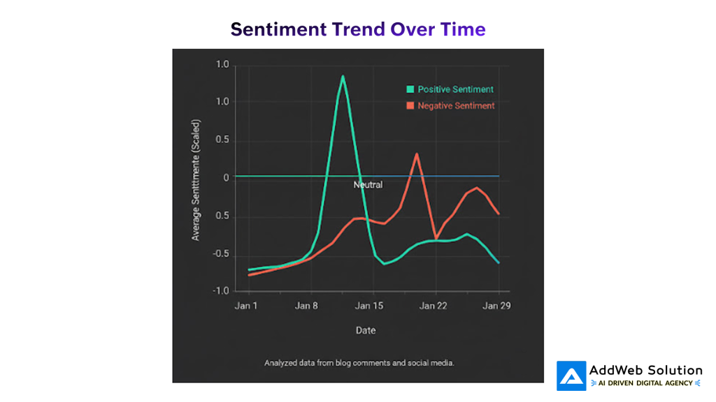 - Sentiment Over Time Line Graph: Tracks sentiment trends, helping to identify reactions to specific events or content releases.