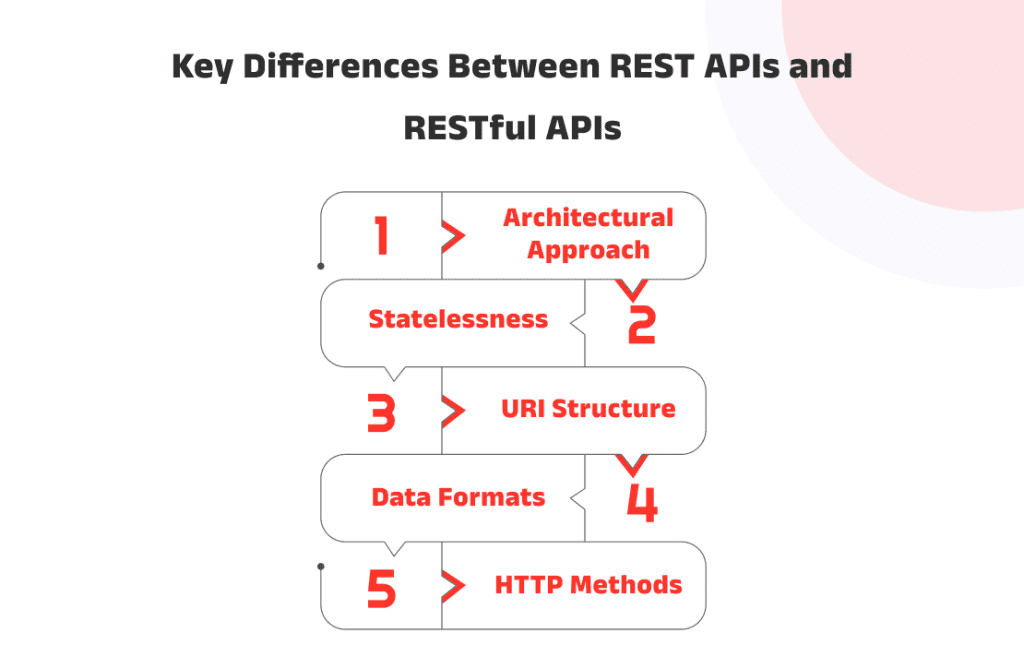 The difference between REST and RESTful APIs is in the approach to conceptualization and the implementation of the architectural principles behind REST. Although REST (Representational State Transfer) provides guidelines for the design of networked applications, RESTful APIs are the actual implementation of these concepts. The primary differences lie in their design approach, states of inertia, URI structure, data formats, and HTTP methods. Knowing these differences is essential to developers trying to navigate the complexities of web-based services since it affects the design decisions and the scalability and overall effectiveness of applications. In this article, we explore the subtleties that separate these two types, shedding some light on why they might be favored over one in developing web-based apps.