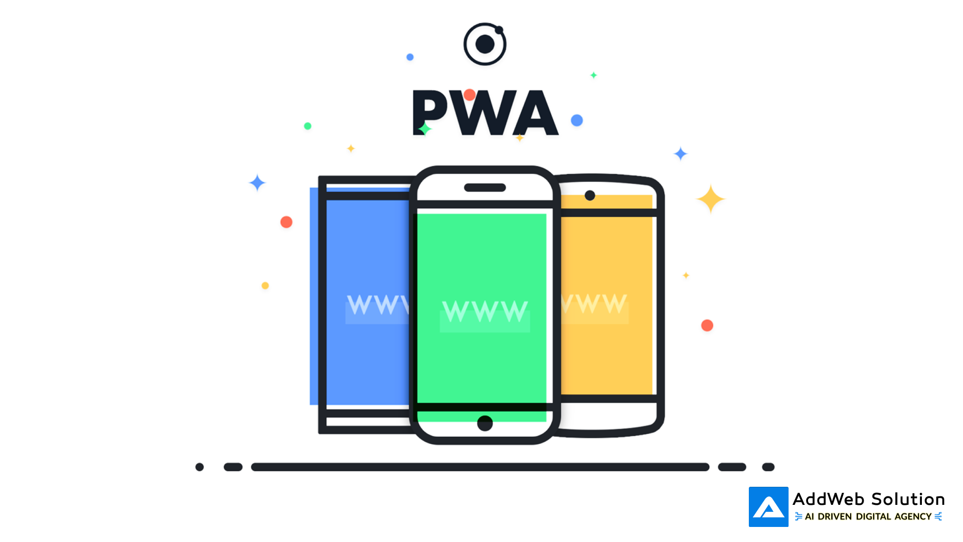 Illustration of progressive web apps (PWAs) on mobile devices symbolizing web access and modern mobile technology