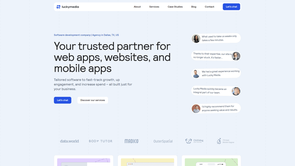 Lucky Media operates from Dallas, Texas as one of the leading Laravel development companies in America. They create high-performance and scalable web applications. The company started in 2014 and has delivered Laravel-focused digital solutions. They combine the framework with tools like Vue.js, React, Tailwind CSS, and Alpine.js.