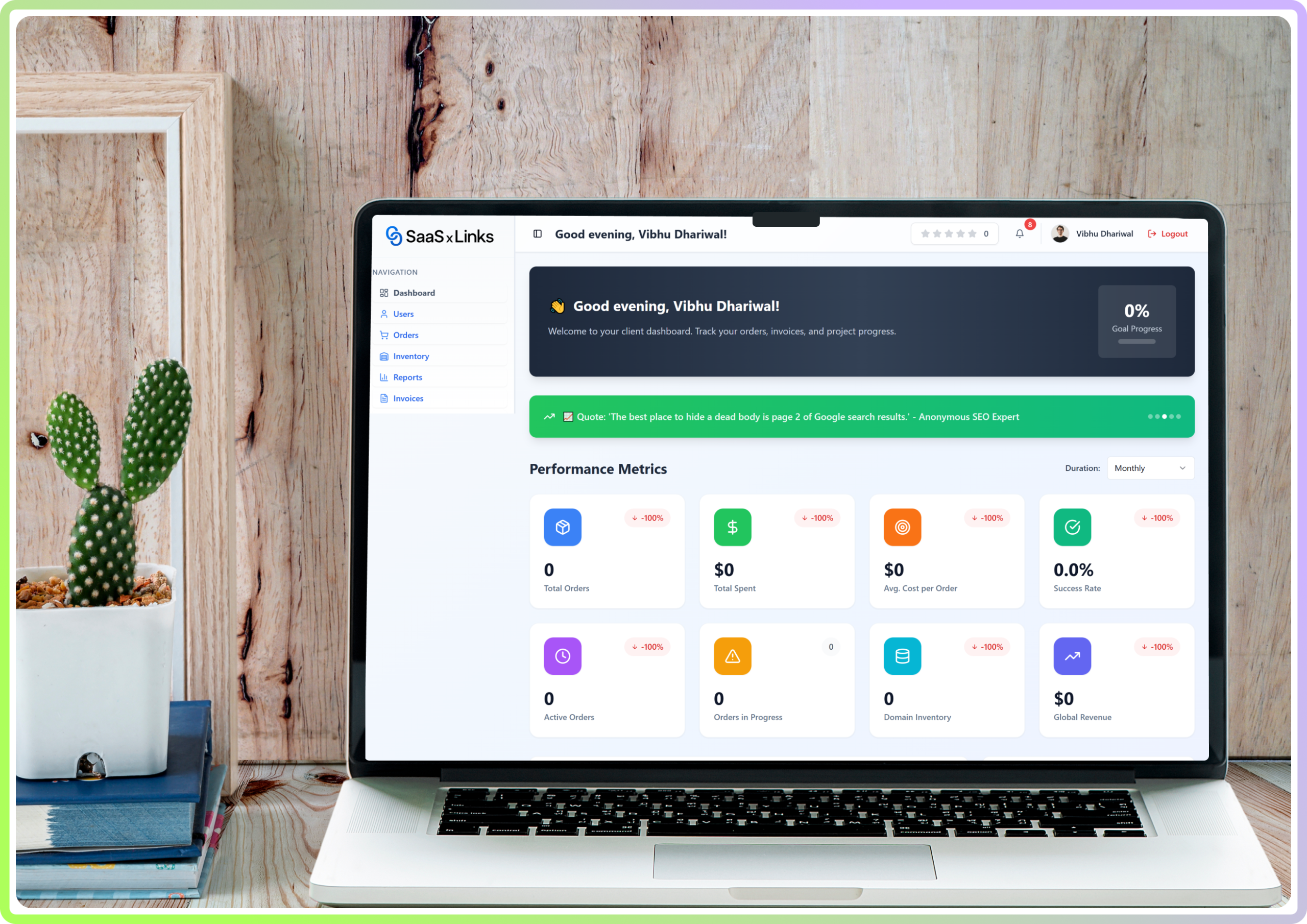 SaaSXLinks operates in a competitive SEO and digital marketing landscape where efficiency, accuracy, and client satisfaction are paramount. Before the Laravel-DG-Dashboard, the company struggled with fragmented systems that made domain inventory tracking cumbersome, order management error-prone, and client communication inefficient.