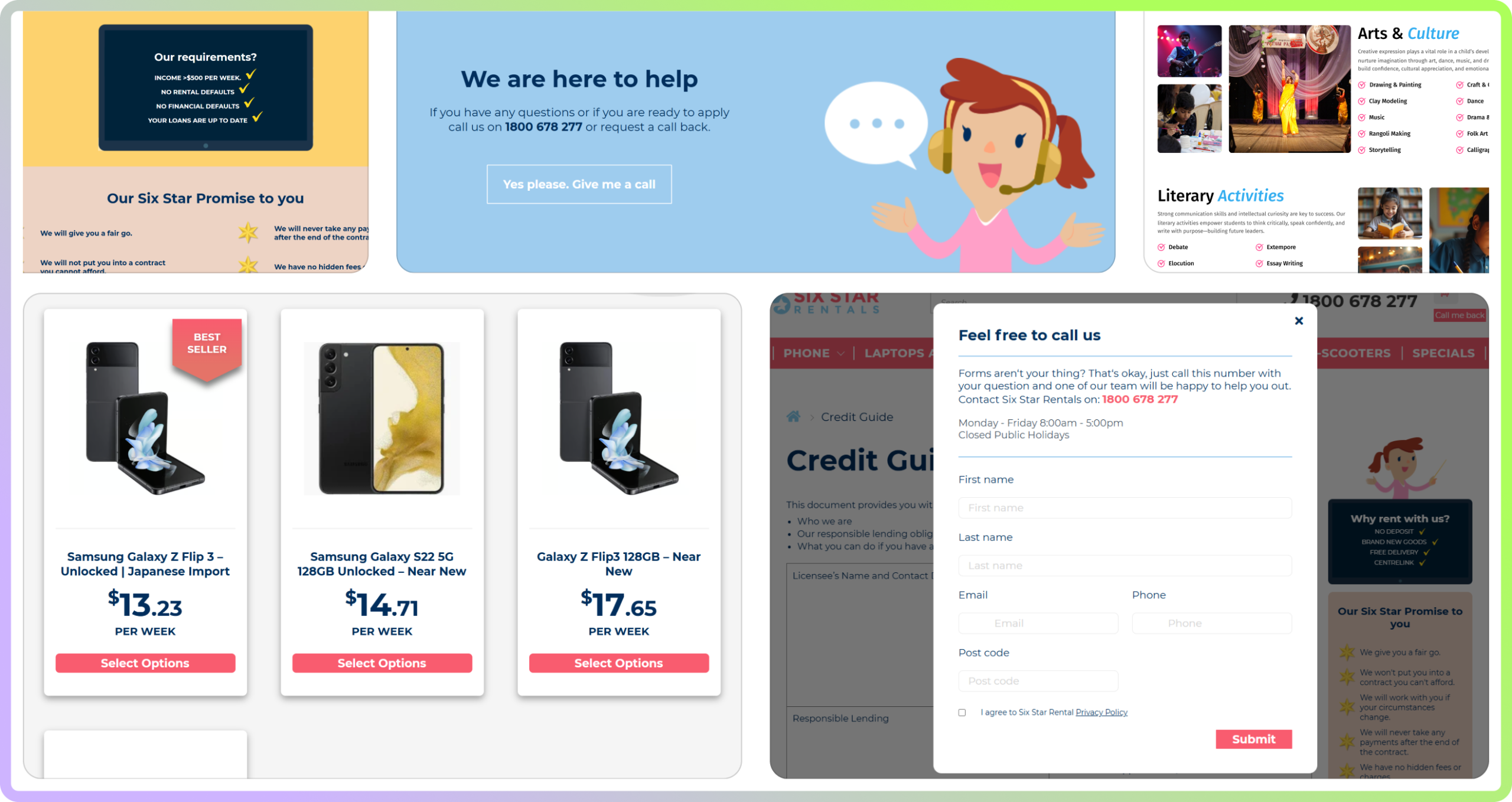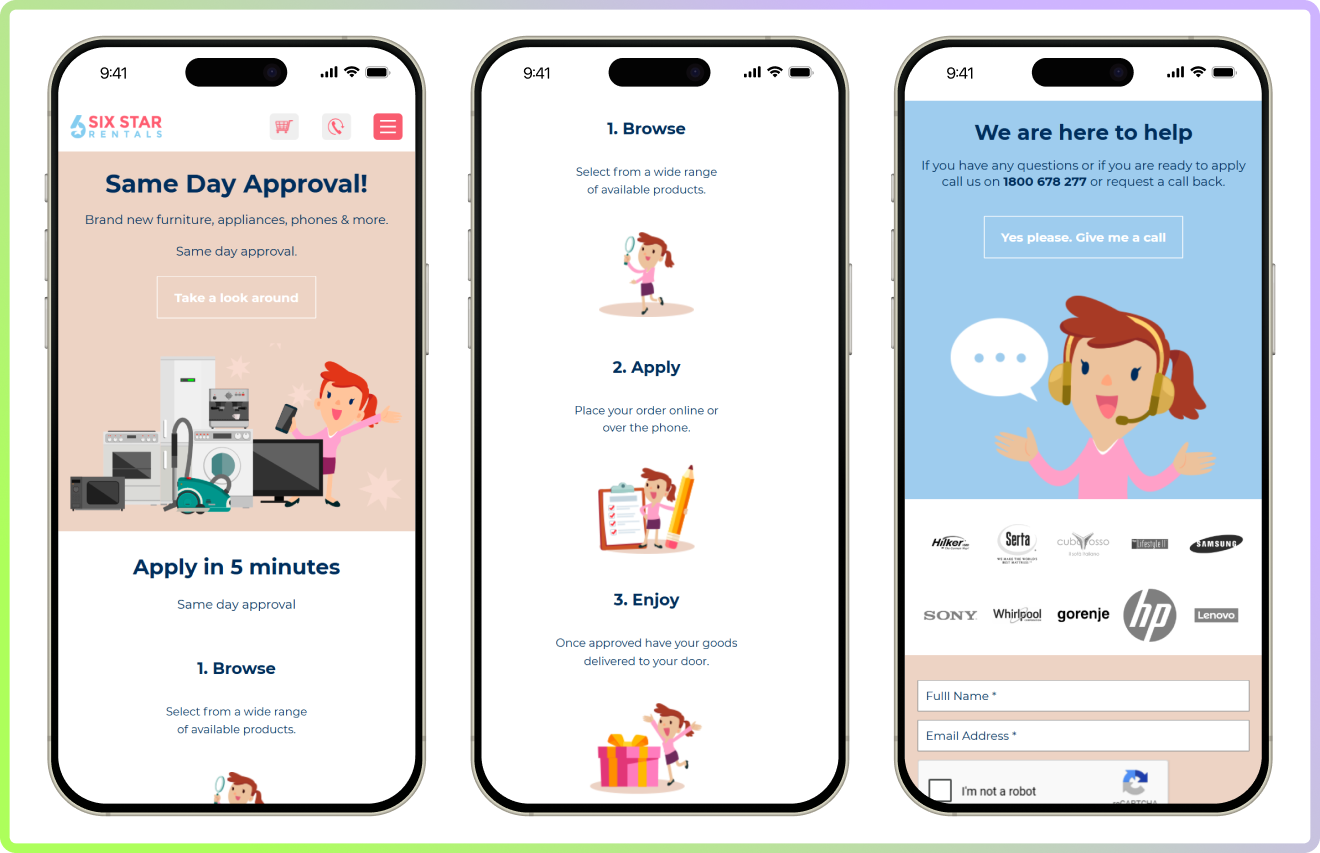 About Our Client: Six Star Rentals is an Australian-based eCommerce business specializing in renting electronics, home appliances, furniture, and scooters. With a mission to make quality products accessible without the high upfront cost, the company focuses on convenience, affordability, and customer satisfaction.