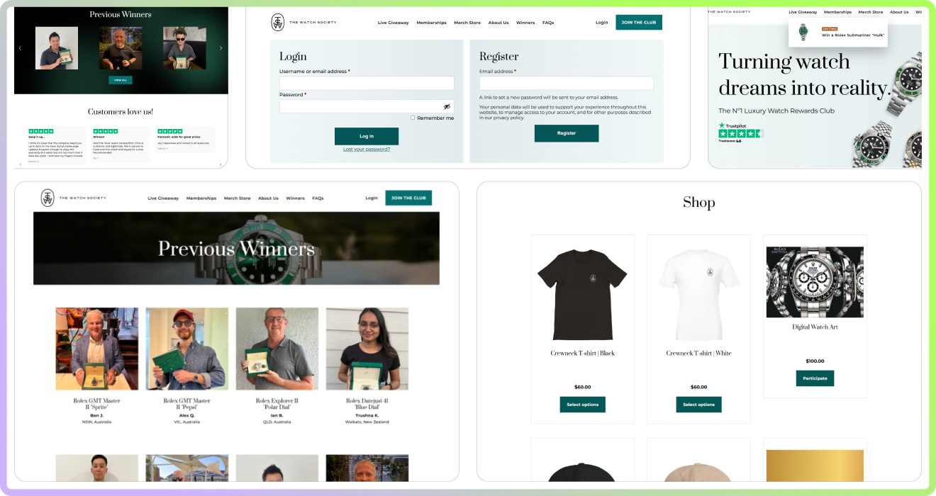 The Watch Society platform received a focused technical upgrade to better serve its growing community of watch enthusiasts. Built on WordPress and WooCommerce and hosted on WordPress.com, the site maintained its original structure while undergoing essential backend customizations.